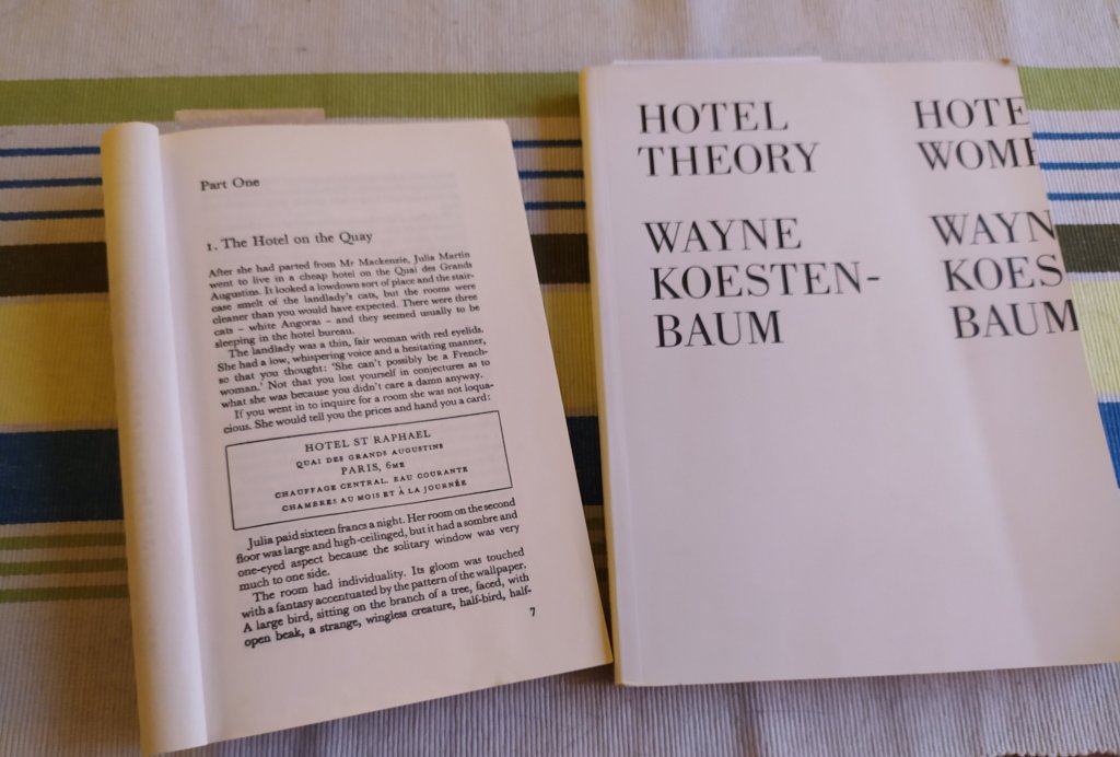 As I write this I am thinking how much Rhys is a lockdown writer. In these hotel rooms she writes of days of monotonous existence, a still life spent hiding away and avoiding other people. In his book, Hotel Theory – a meditation on the meaning of hotels – Wayne Koestenbaum writes this hotel consciousness into his prose, describing Rhys as ‘exemplary hotel woman’. It is a book I have enjoyed returning to and which also has a ‘lockdown vibe’. This thinking about hotels and their meaning recurs throughout my project, through Rhys’s rooms and hotels, the kind of thinking that makes me want to retreat to the anonymity of a hotel room and close the door until the book is finished. This sense of waiting is why I keep returning to Mackenzie; the book itself feels like a turning point in Rhys’s writing, and Carole Angier thinks of it as having a certain emptiness about it, as being ‘inbetween’.