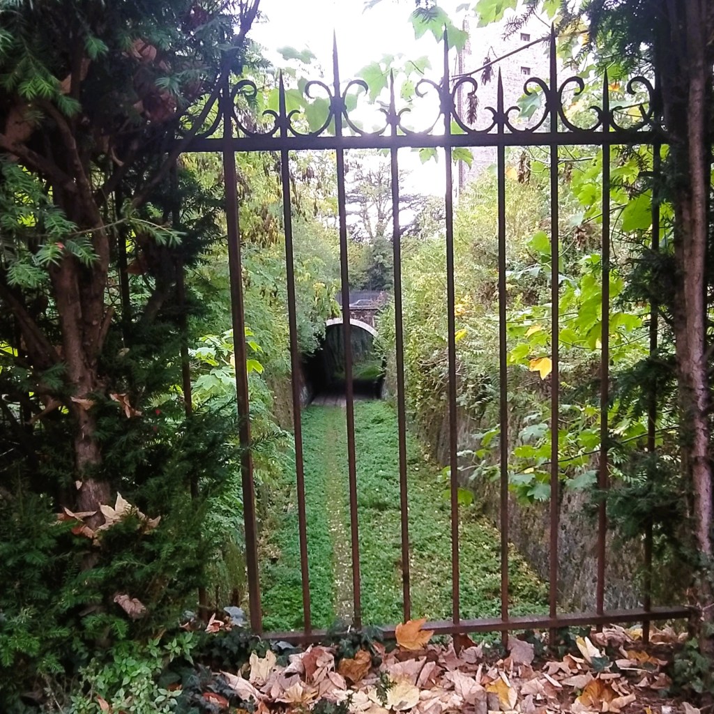 The quiet stillness is palpable and even in my photographs, through blurry lines of trees and branches, leaves swirl across in dreamy motion, like hallucination. I move away, zoom out, the tunnel ever vanishing, present but more obscure than ever. I turn around and look back. There is only the bricked-up tunnel one way, or the steep and narrowing valley the other. In that moment, a conflicting urge to turn back, to run away from the enclosed space, or to plunge onwards along the path to its ending. Swallowed up by leaves and branches, with no way out.